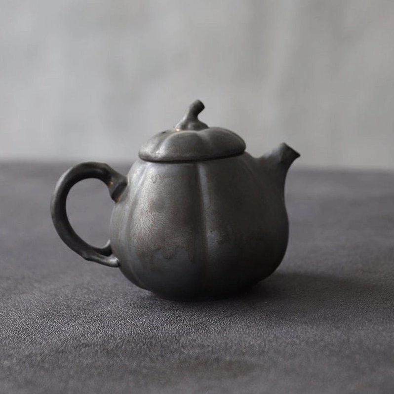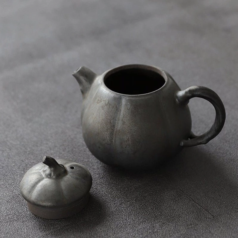 - Unique Natural Bionic Design: The whole teapot is crafted into a realistic pumpkin shape: textured body ridges, pumpkin-stem lid knob, and vine-curved handle brings natural fun and artistic vibe to your daily tea time. The dark gray vintage finish adds a quiet, elegant rustic charm that fits both traditional Chinese tea rooms and modern minimalist homes.