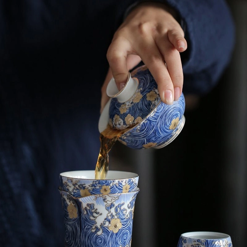 - Exquisite Artisanal Design: Inspired by the starry night sky over the ocean, the set features hand-detailed blue wave motifs with delicate gold floral accents. The calming blue-and-gold palette creates an elegant, sophisticated look that complements any home decor or tea room.