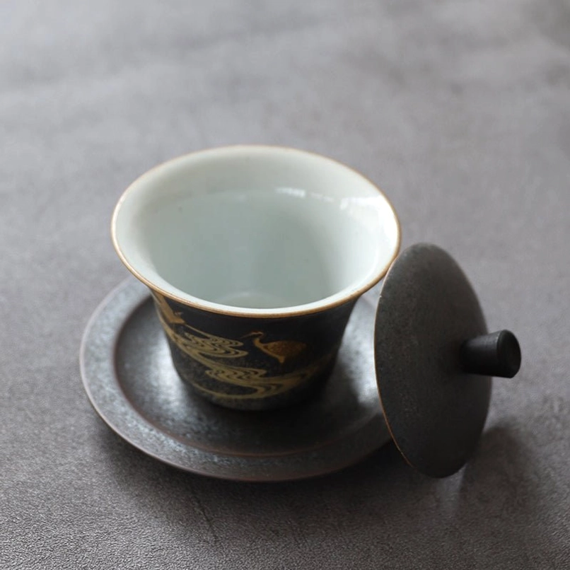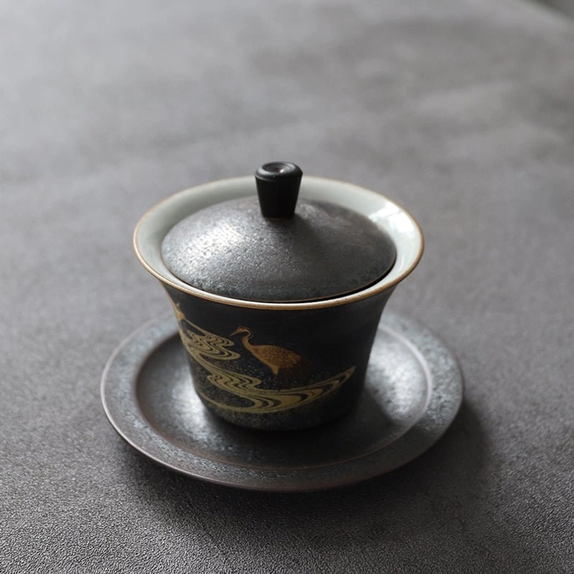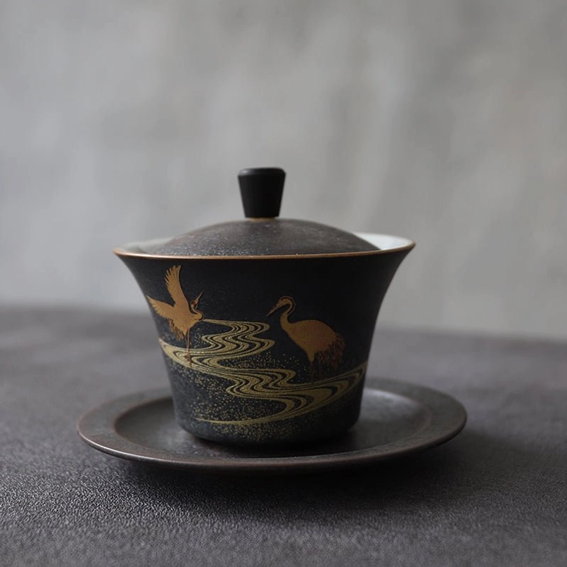 Bring timeless Chinese tea culture to your home with this handcrafted black crane gaiwan tea set. A classic 3-piece lidded bowl design, this gaiwan is perfect for mastering the art of gongfu cha tea brewing, blending cultural meaning, practical function, and artisan craftsmanship.