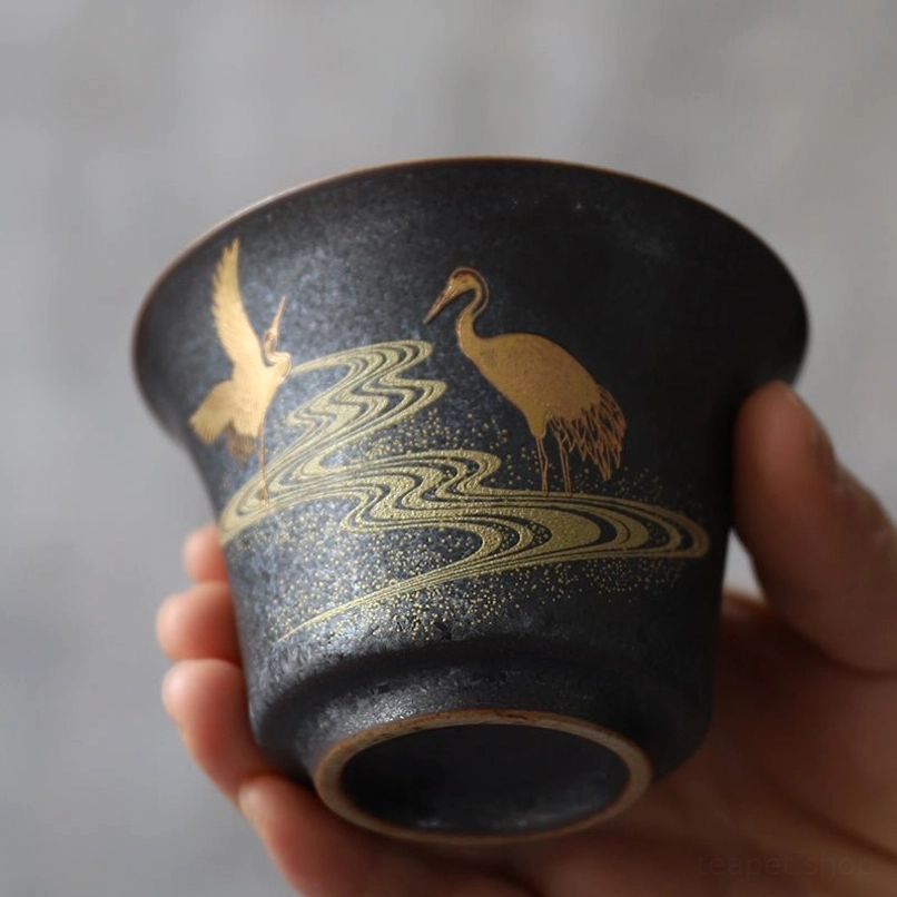 - Artisan Hand-Decorated: Detailed hand-painted black crane and water motifs with elegant gold accents, adding subtle luxury to any tea space.