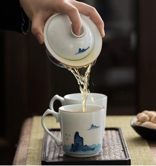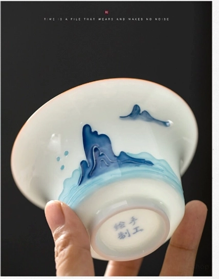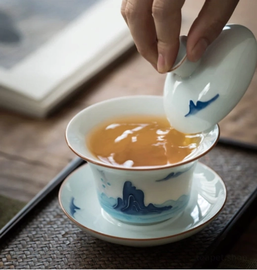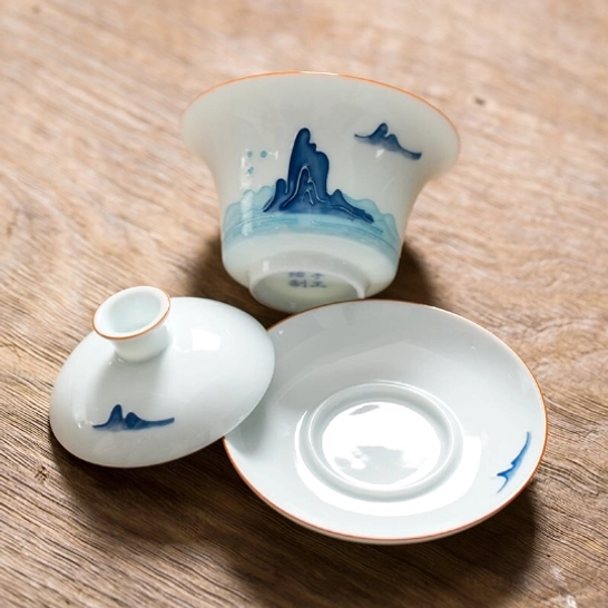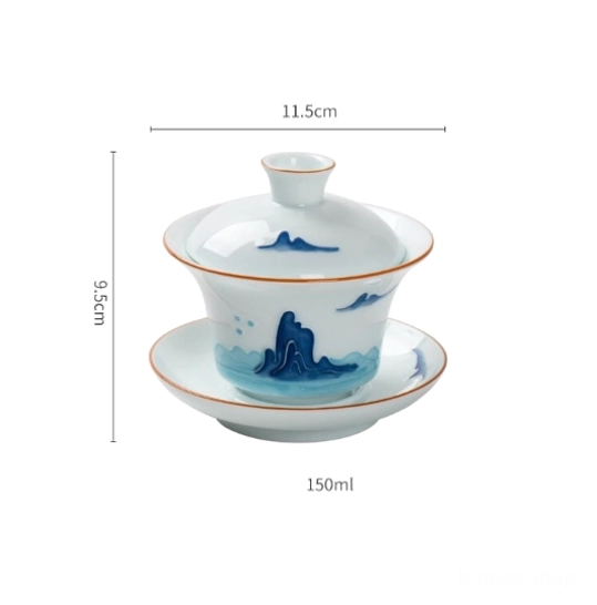 Rooted in over 400 years of Chinese tea tradition, the gaiwan (literally “covered bowl”, also called “sancai gaiwan” where lid = heaven, bowl = human, saucer = earth) is the gold standard for brewing fine loose-leaf tea. This hand-painted blue mountain cloud gaiwan tea set blends centuries-old craftsmanship, Chinese landscape art, and modern practicality to bring a tranquil, elegant tea experience to your daily routine.