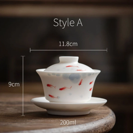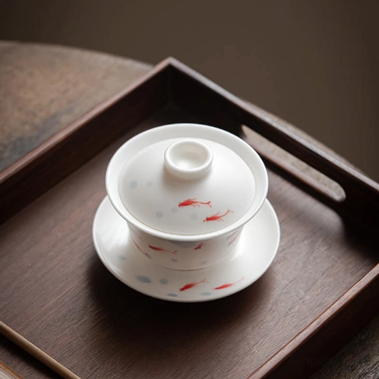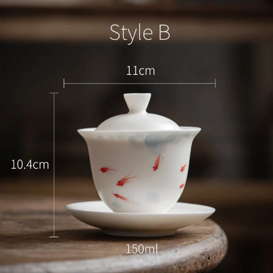 150ml Hand-Painted Koi Fish Porcelain Gaiwan Tea Set