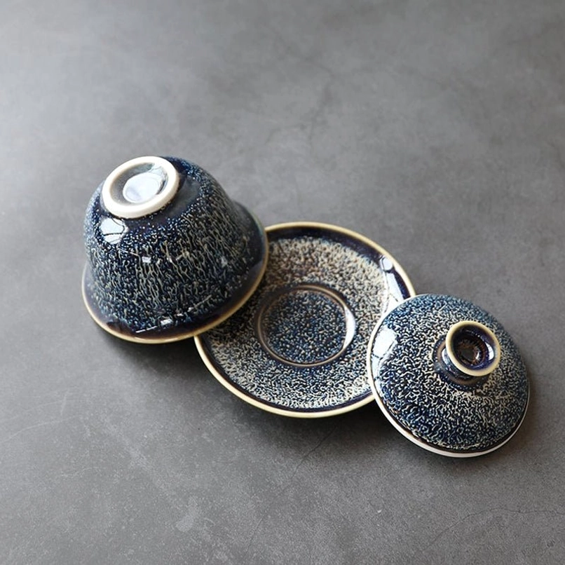 Package includes: 1 x Handcrafted Blue Jian Zhan Gaiwan (lid, bowl, saucer)