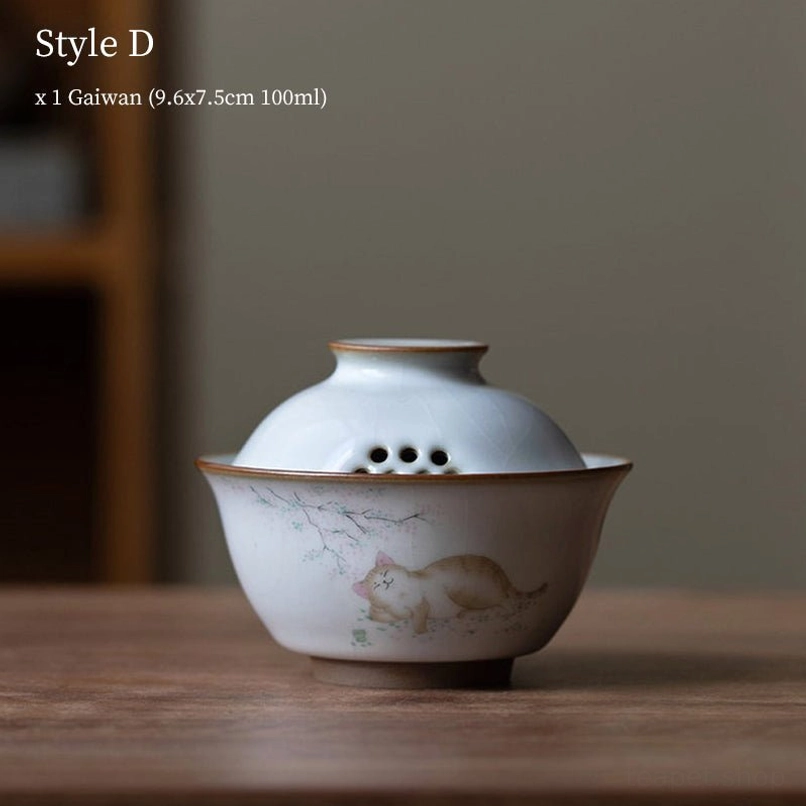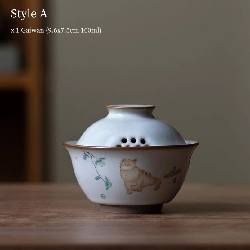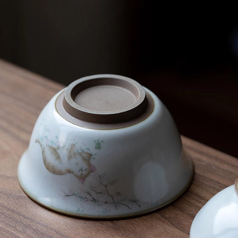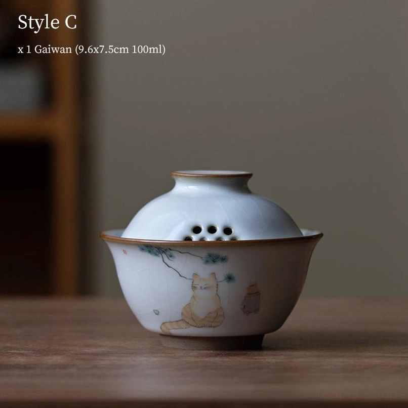 - Hand-painted adorable cat motifs: Each gaiwan features a unique charming cat design with delicate botanical accents, adding a playful touch to your daily tea ritual