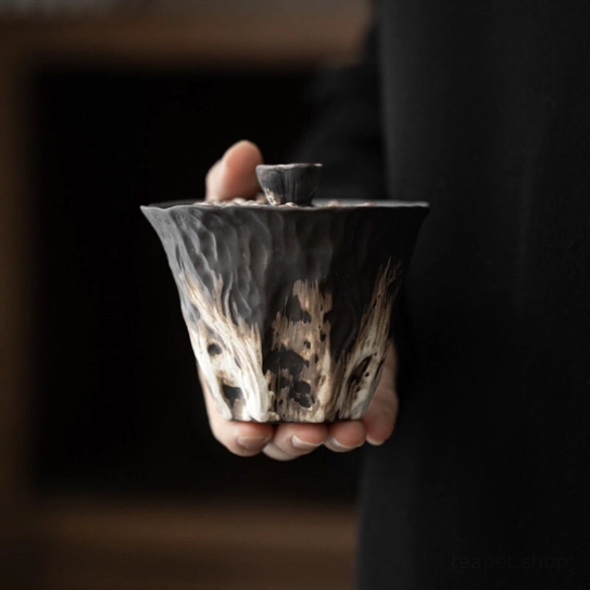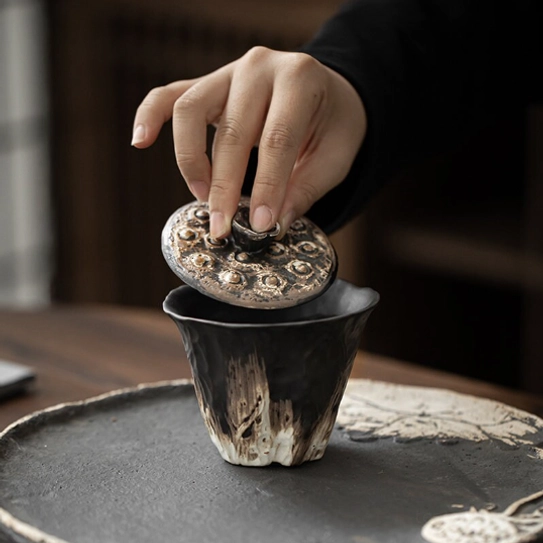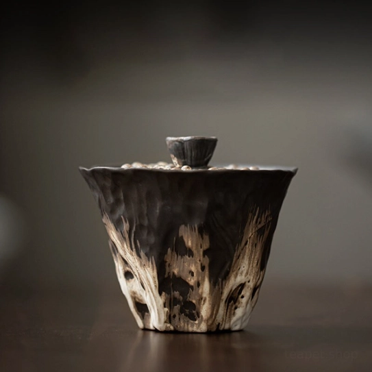 - Unique Artisan Lotus Design: The lid is shaped into a textured natural lotus, a symbol of purity, tranquility, and prosperity in Chinese culture. The rustic organic gradient black-brown-white glaze and hand-carved texture give every piece one-of-a-kind character you won’t find in mass-produced gaiwans.