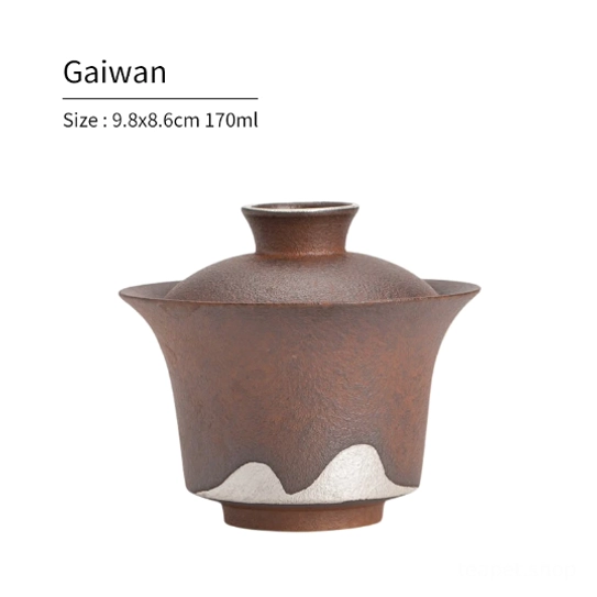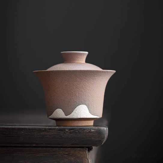 This 170ml gaiwan tea set piece blends traditional Chinese tea culture with modern minimalist aesthetics. The deep rustic clay body is adorned with hand-painted white mountain landscape motifs, bringing the serene beauty of Chinese ink painting to your daily tea ritual. The porous matte clay texture not only provides a comfortable non-slip grip but also retains heat perfectly for steady steeping.