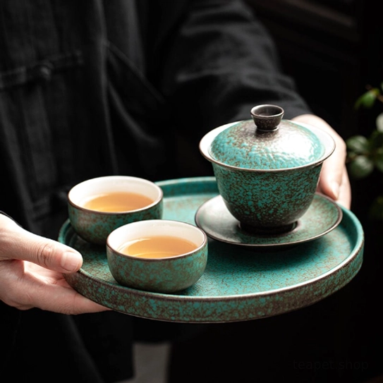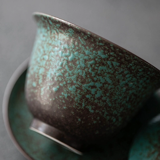 - Unique Kiln-change Glaze Artistry: Each piece is hand-glazed and fired to create one-of-a-kind muted green and dark brown mottled texture, bringing a vintage rustic artistic vibe to your tea table that no mass-produced gaiwan can match.