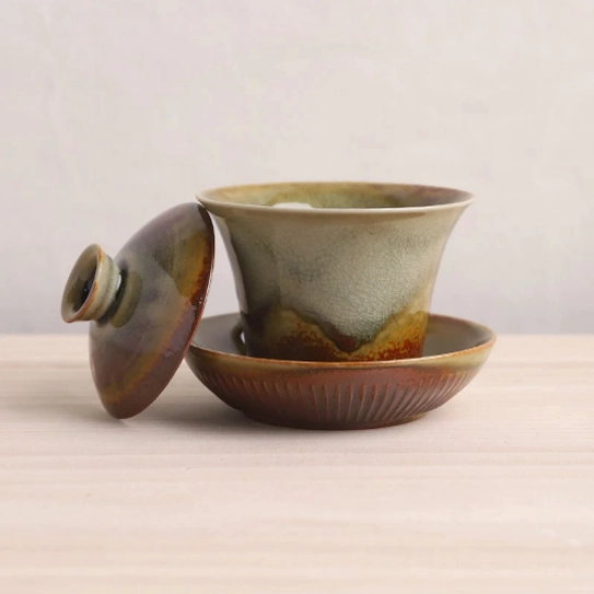 Each of our gaiwans is individually crafted from high-fired stoneware ceramic and finished with a specialty wood-fired reactive glaze that creates natural, one-of-a-kind color gradients and crackle texture. No two pieces are exactly alike — you’ll own a truly unique work of tea art that adds timeless rustic elegance to any tea space.