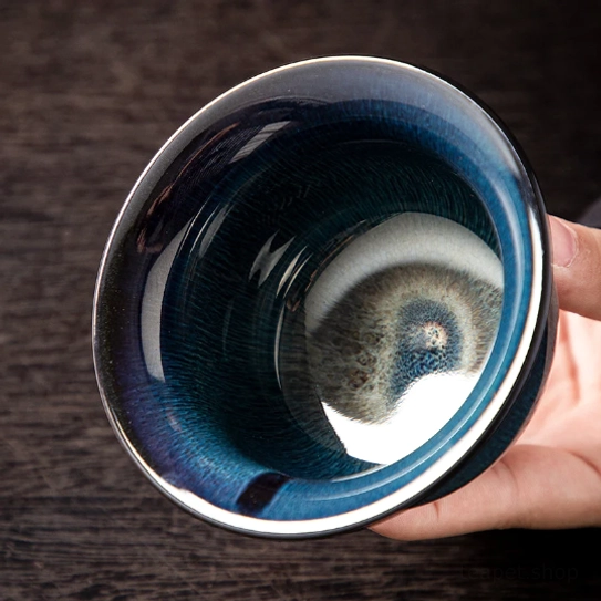 This traditional 3-piece gaiwan (lid, bowl, saucer) comes from Jingdezhen, China’s centuries-old ‘Porcelain Capital’, crafted with a unique kiln-change rabbit hair glaze technique. Each piece features one-of-a-kind blue-green and golden gradient textures, making your tea brewing experience both delicious and visually stunning.