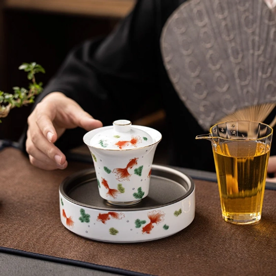 Experience Authentic Chinese Gongfu Tea With This Lucky Koi Fish Gaiwan Tea Set