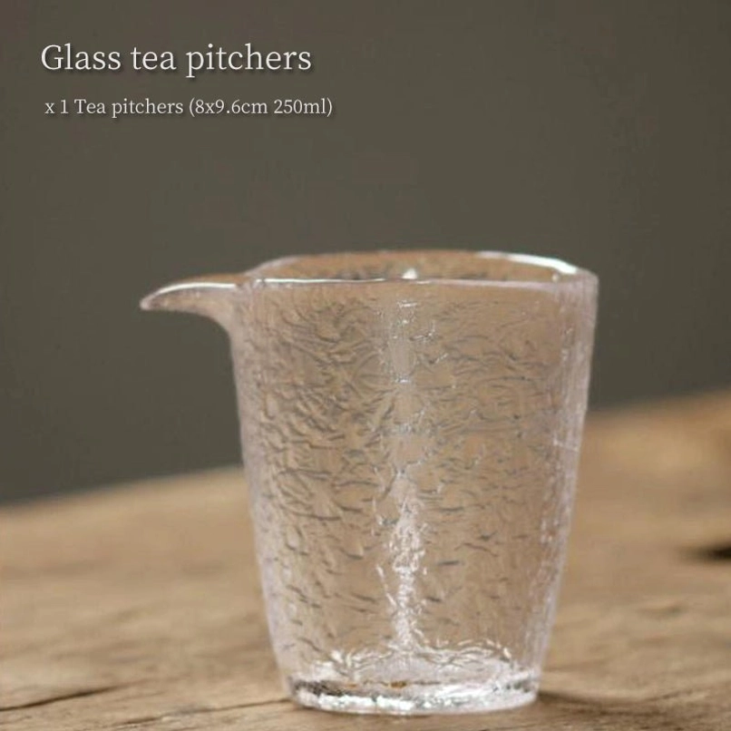 Authentic 250ml Gong Dao Bei (glass tea pitcher) with textured ice-crack finish, heat-resistant glass, and smooth spout for perfectly even tea pouring.