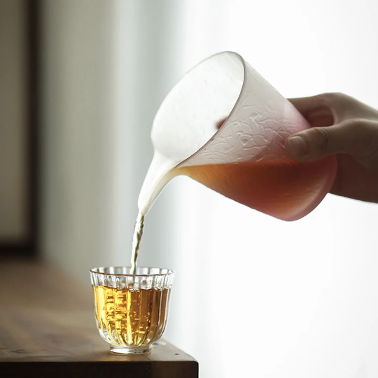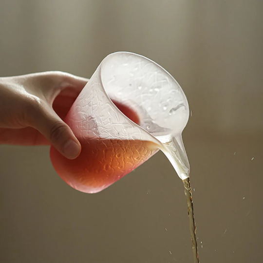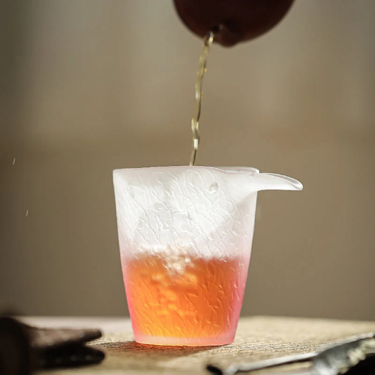 The frosted glass tea pitcher made of hyperbar -silicon, It is a perfect tea fair cup, you can used it brewing gongfucha every day!