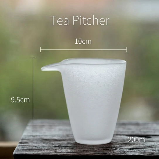 Handcrafted high-borosilicate glass Gong Dao Bei (fairness cup) for even tea distribution. Elegant frosted finish, 200ml capacity, perfect for gongfu tea ceremonies.