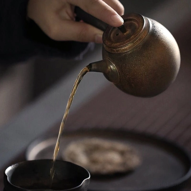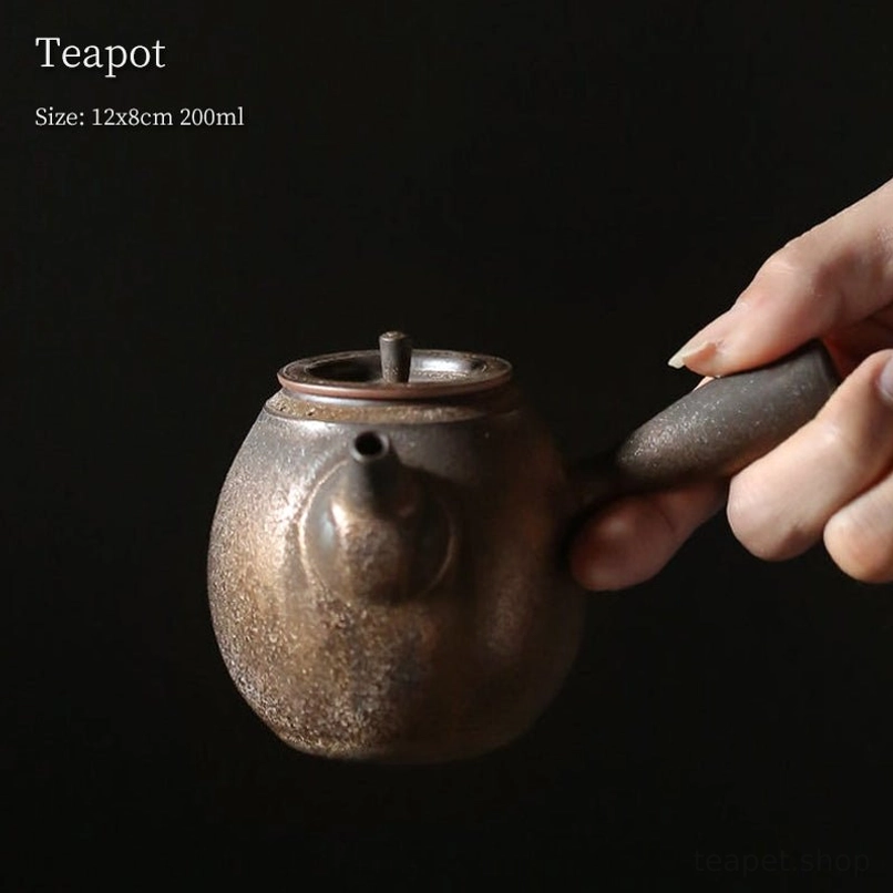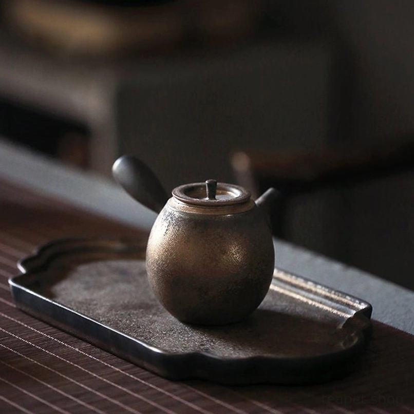 Kyusu (急須) is the iconic side-handle teapot deeply rooted in East Asian tea culture, designed for comfortable grip and precise control over pouring. This handcrafted bronze ceramic Kyusu blends traditional craftsmanship with modern aesthetic, bringing a touch of serene elegance to your daily tea ritual.