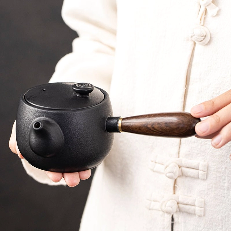 Side-handled teapots known as Kyusu have been a staple of East Asian tea culture for centuries, valued for their ergonomic design and precise pour control. This handcrafted ceramic Kyusu blends traditional Chinese artistic heritage with modern practicality, making it perfect for casual daily sipping and intentional tea ceremonies alike.