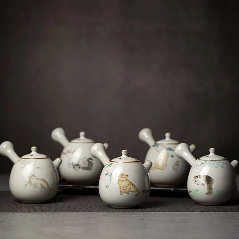 A traditional Kyusu is Japan’s beloved side-handle brewing teapot, adapted from Chinese ceramic tea culture. This modern cat-themed Kyusu combines traditional ceramic craft with cute contemporary design, ideal for everyday loose leaf tea brewing.