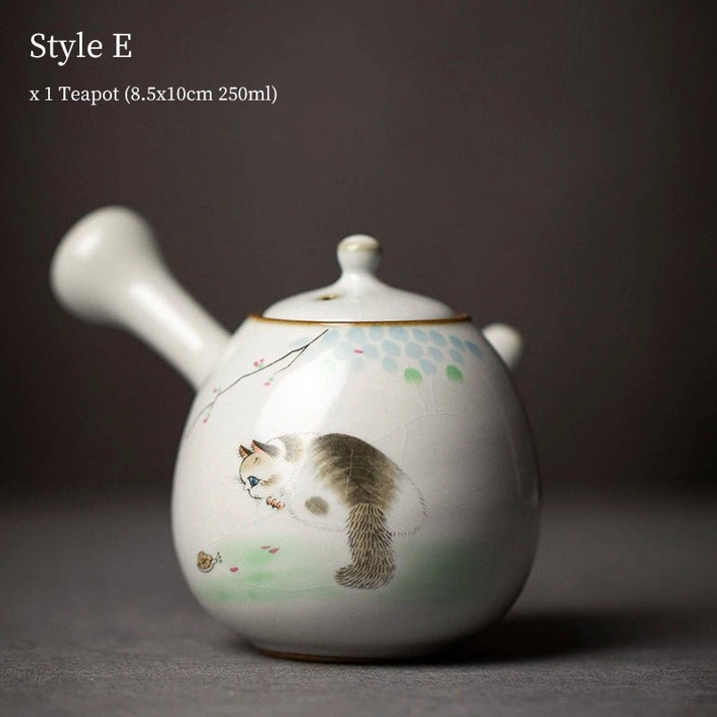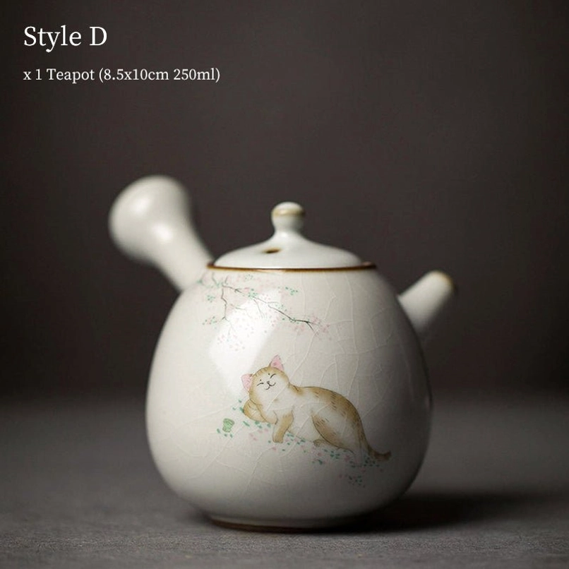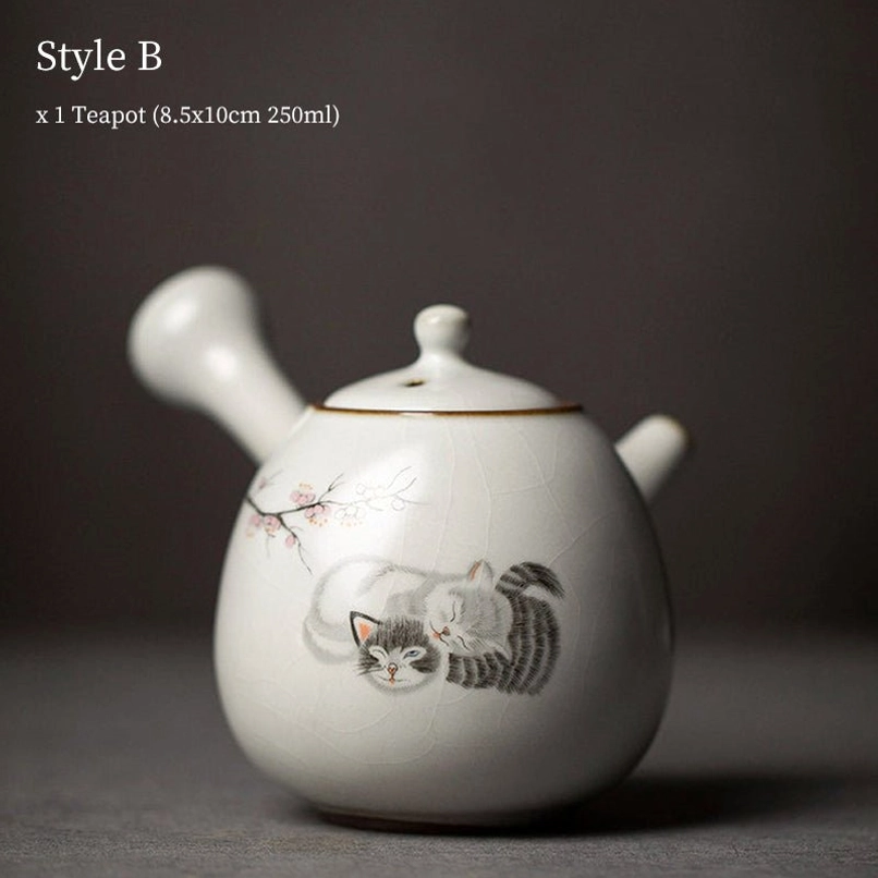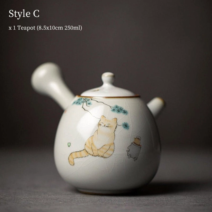 Adorable Cat Themed Ceramic Kyusu Teapot