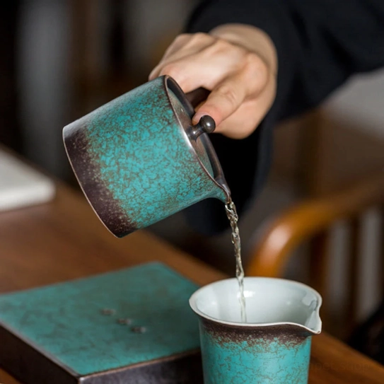 - Unique Artisan Finish: The textured blue-green body with dark crackle-inspired detailing gives this Kyusu a warm vintage aesthetic that will stand out beautifully on any tea table or shelf.