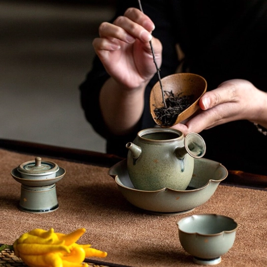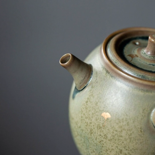 - Unique Vintage Aesthetic: Features a muted speckled celadon glaze with warm brown trim and delicate hand-detailed golden ginkgo leaves. In Chinese culture, ginkgo symbolizes longevity, resilience and good fortune, adding subtle meaningful beauty to your tea space.