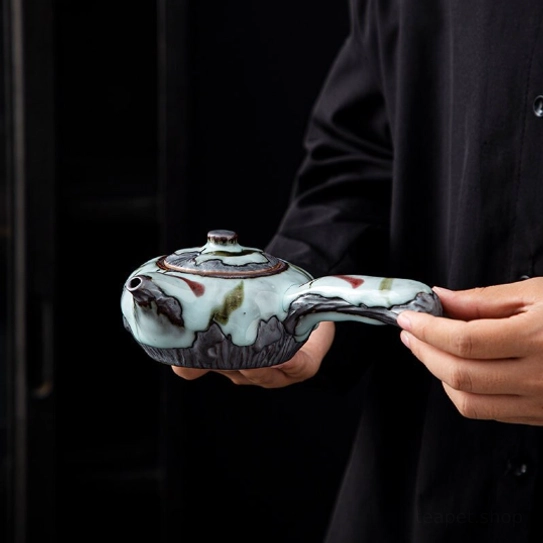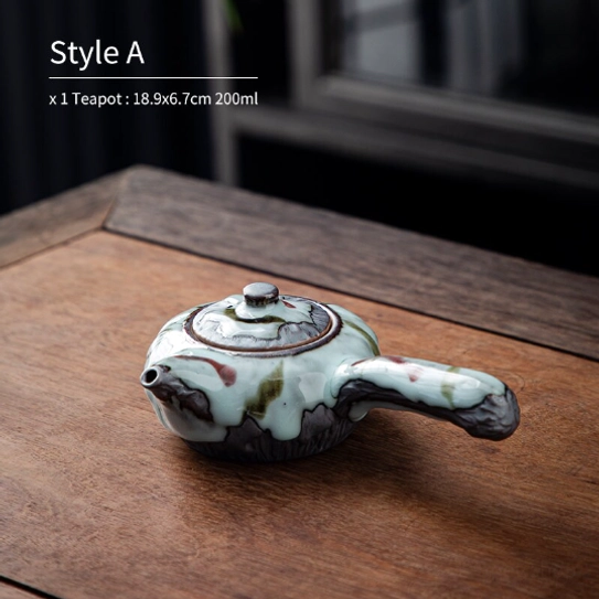 Inspired by the Japanese Wabi-Sabi philosophy that finds beauty in imperfection and natural simplicity, this handcrafted ceramic Kyusu teapot blends centuries of East Asian tea culture with modern practicality. Each piece features one-of-a-kind kiln-fired natural textures and organic color flows, making your teapot truly unique—no two are exactly alike.