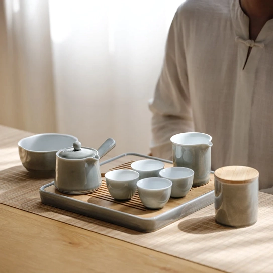 - Complete Matching Set: This full set includes everything you need for immediate tea enjoyment: 150ml (5oz) kyusu teapot, 2 matching teacups, compact tea tray, and small tea canister for storing loose leaf tea. All pieces feature a soft, muted gray-green finish that complements any decor.