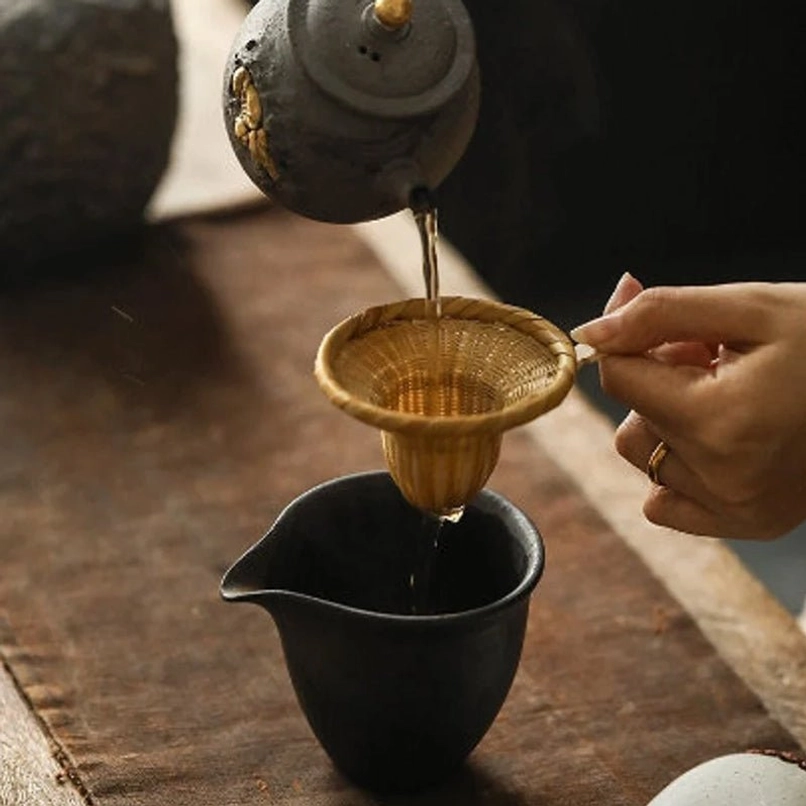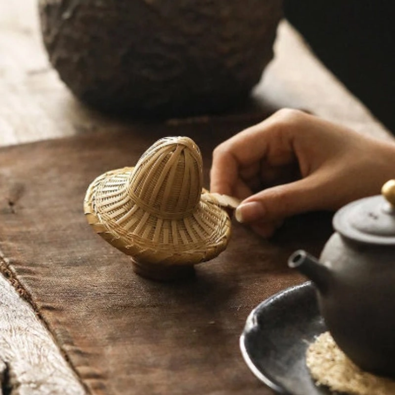 In Chinese tea culture, bamboo has always been a symbol of integrity, simplicity and vitality, closely linked to the spiritual pursuit of tea lovers. For centuries, Chinese artisans have woven bamboo into tea accessories, bringing the freshness of nature to the tea table and honoring the tea philosophy of ‘harmony with nature’. This hat-shaped design is a creative twist on traditional tea strainers, blending functionality with artistic flair.