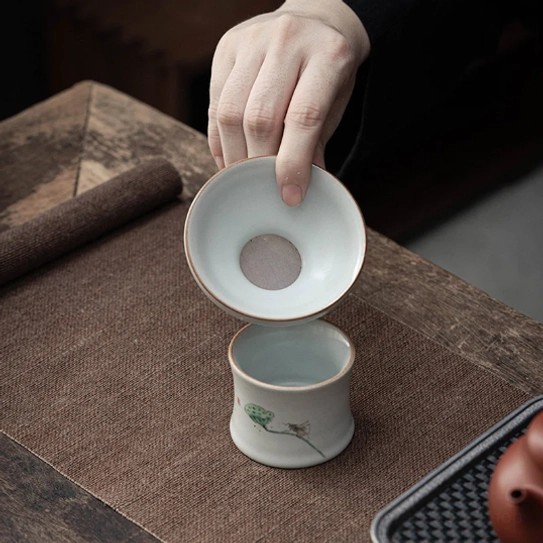Rooted in thousands of years of traditional Chinese tea culture, this handcrafted Ru Kiln ceramic loose leaf tea strainer blends practical function with timeless artistry. In Chinese culture, the lotus symbolizes purity, harmony, and spiritual awakening — making this strainer more than just a tea tool: it’s a meaningful addition to any tea collection, and a thoughtful gift for tea lovers.