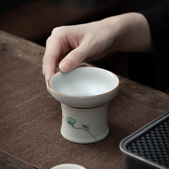 - Premium Quality Ceramic: Crafted from high-fired Ru Kiln ceramic, this strainer is naturally heat-resistant, non-porous, and easy to clean. It preserves the authentic flavor of your tea without altering taste, perfect for daily use.