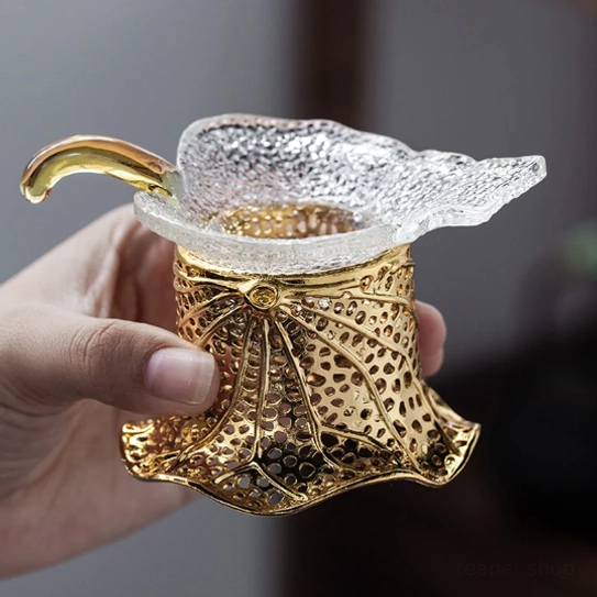 - What’s included: 1 glass tea strainer + 1 gold metal stand