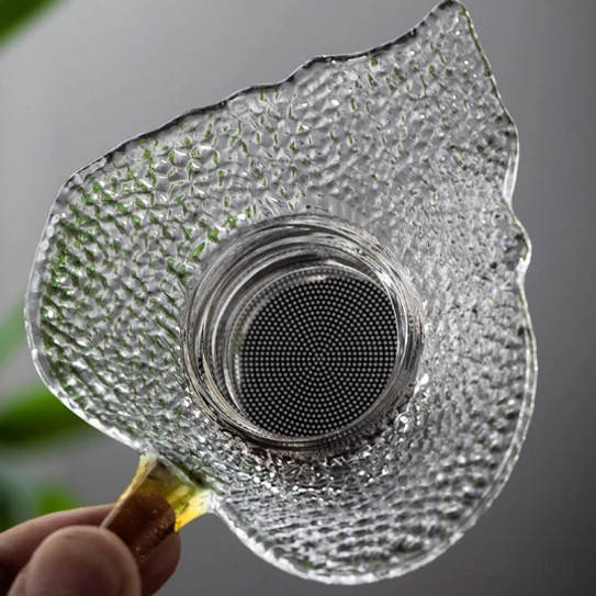 - Unique Nature-Inspired Design: Shaped like a natural leaf with textured hammered glass, it works as a functional filter and a decorative accent for your tea table.