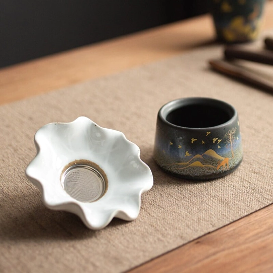 This handcrafted vintage-style porcelain loose leaf tea strainer set is a traditional Chinese tea accessory that combines elegant aesthetics with practical function. Rooted in centuries of Chinese tea culture, a proper tea strainer is essential for achieving a smooth, leaf-free cup of tea — and this set adds an artistic, calming touch to any tea space.