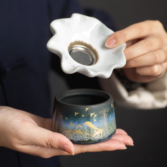 In Chinese tea culture, the designs on traditional tea accessories carry deep, meaningful symbolism. The golden mountains, flowing water, and gentle deer on this strainer base represent harmony, prosperity, and tranquility — core values of the Chinese tea ceremony that encourage peace and connection with every cup. Owning this piece lets you bring a little bit of this centuries-old cultural wisdom into your daily routine.