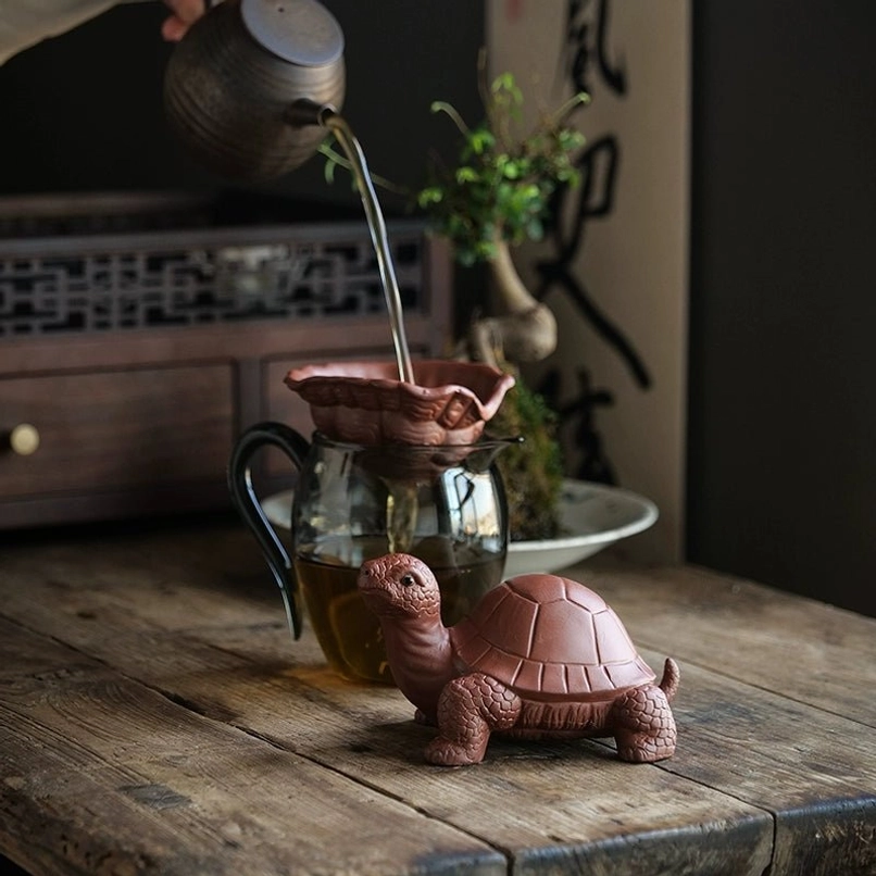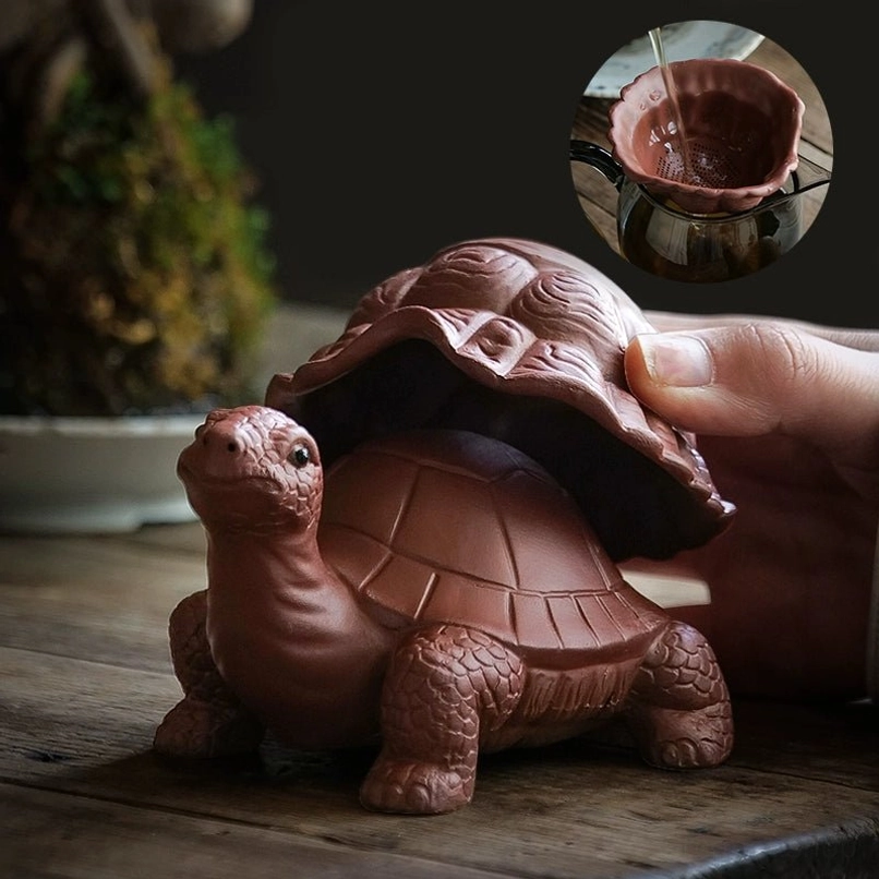 In traditional Chinese culture, the turtle is one of the Four Sacred Animals, symbolizing longevity, stability, good fortune, and wisdom. This aligns perfectly with the core values of Chinese tea culture: peace, tranquility, and harmony with nature. Handcrafted from authentic Yixing purple clay, a material famous for fine tea ware production in China for over 1,000 years, this unique 2-in-1 turtle design combines practical tea function with meaningful cultural art.