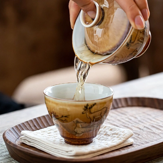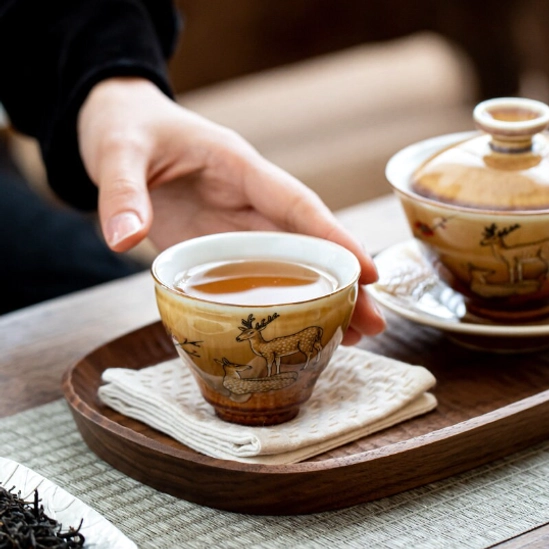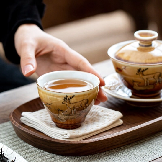 Rooted in thousands of years of authentic Chinese tea culture, the chawan (traditional Chinese tea bowl) is the essential vessel for fully appreciating the color, aroma, and depth of fine loose-leaf tea. This handcrafted ceramic deer pattern chawan blends centuries-old pottery craft with timeless Eastern aesthetics, bringing a calm, elevated tea experience to every sip you take.
