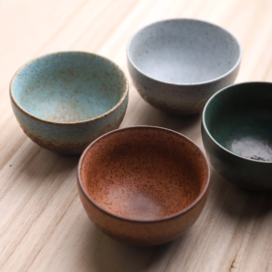 Authentic handcrafted rustic ceramic chawan (70ml / 2.37oz) with one-of-a-kind natural gradient glaze. Perfect for traditional gongfu tea tasting, multiple earthy tones available.