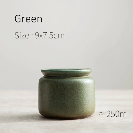 - Elegant Timeless Design: Available in two sophisticated finishes: vintage green with a subtle distressed glaze, and classic matte black. The rounded compact shape with a grooved lid for easy opening adds a touch of understated luxury to any space.
