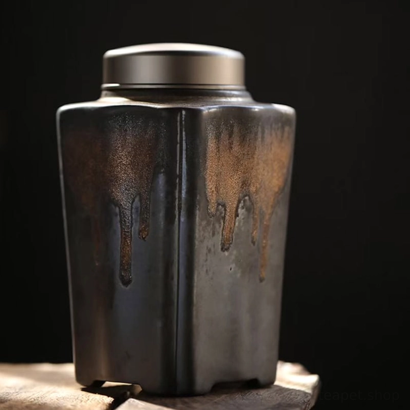 - Set Includes: 1 x Bronze Glaze Ceramic Tea Jar