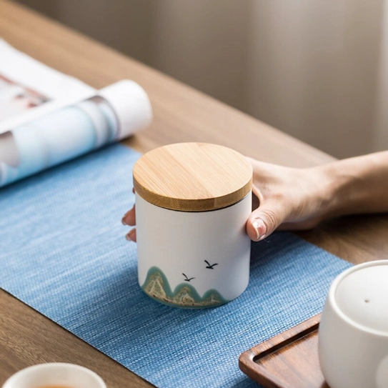 - Traditional Chinese Art Design: Hand-decorated with classic Chinese landscape and flying bird motifs, this tea jar adds a tranquil, cultural touch to any tea space or home decor.