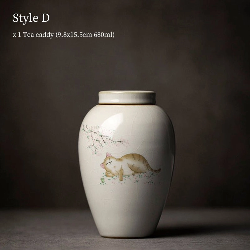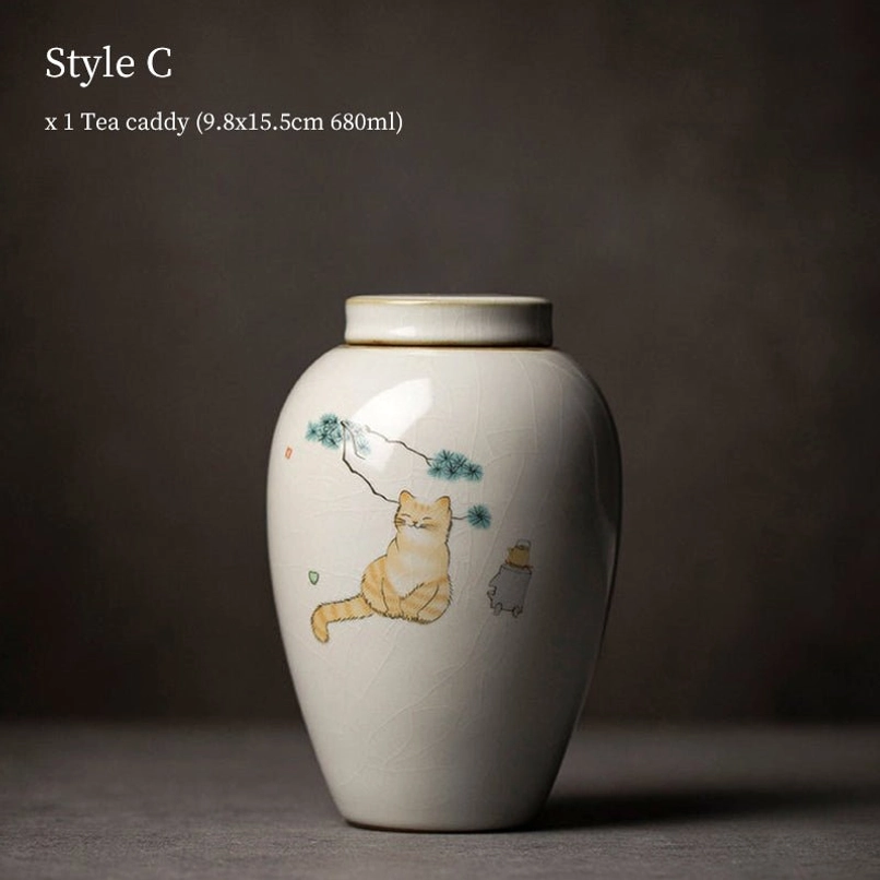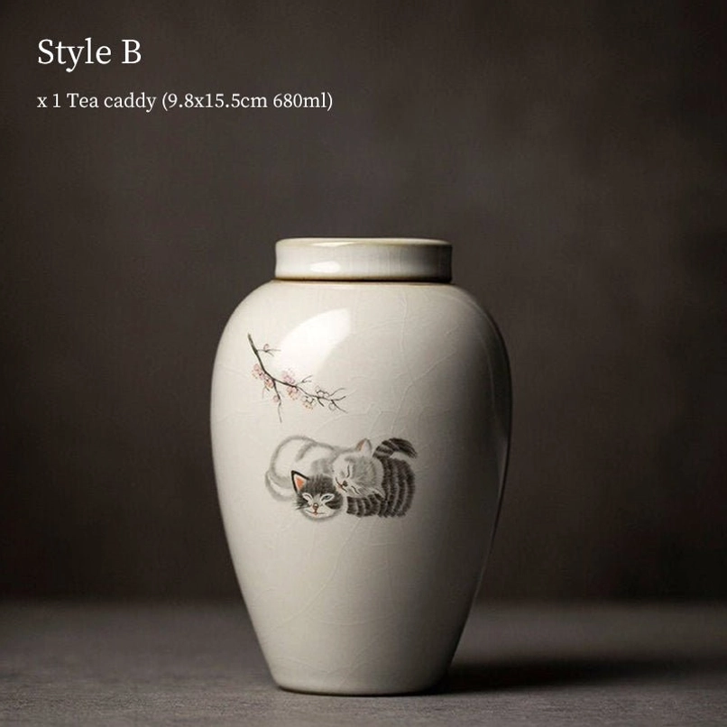 - Unique Cute Cat Theme: Each tea jar is hand-decorated with adorable cat illustrations paired with delicate botanical patterns, blending traditional Chinese pottery style with modern playful design. We offer 5 different cat patterns to match your personal aesthetic.