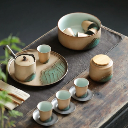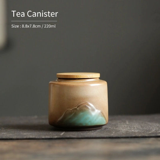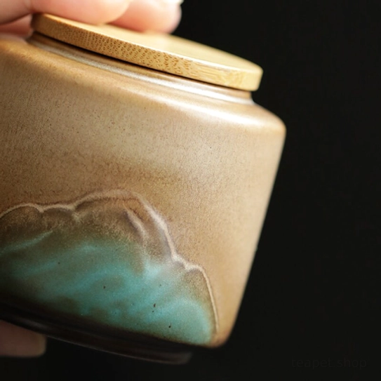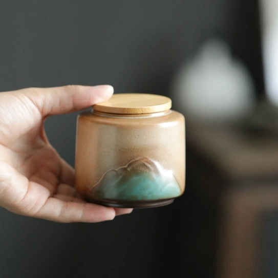 - Unique New Chinese Aesthetic: The jar features a hand-carved relief landscape pattern in soft green over a warm earthy ceramic base, blending traditional Chinese landscape art with modern minimalist design. It doubles as a beautiful decorative piece for your tea table.