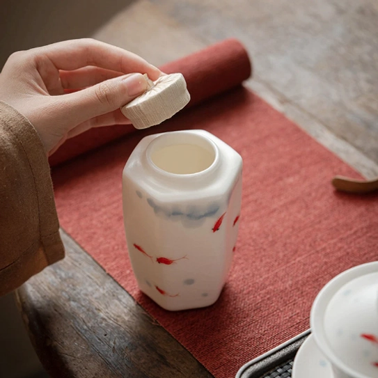 - Unique Hand-Painted Artistry: Every tea jar is hand-decorated by skilled artisans, so no two pieces are exactly identical. The subtle variations in the hand-painted koi pattern make your jar truly one-of-a-kind.