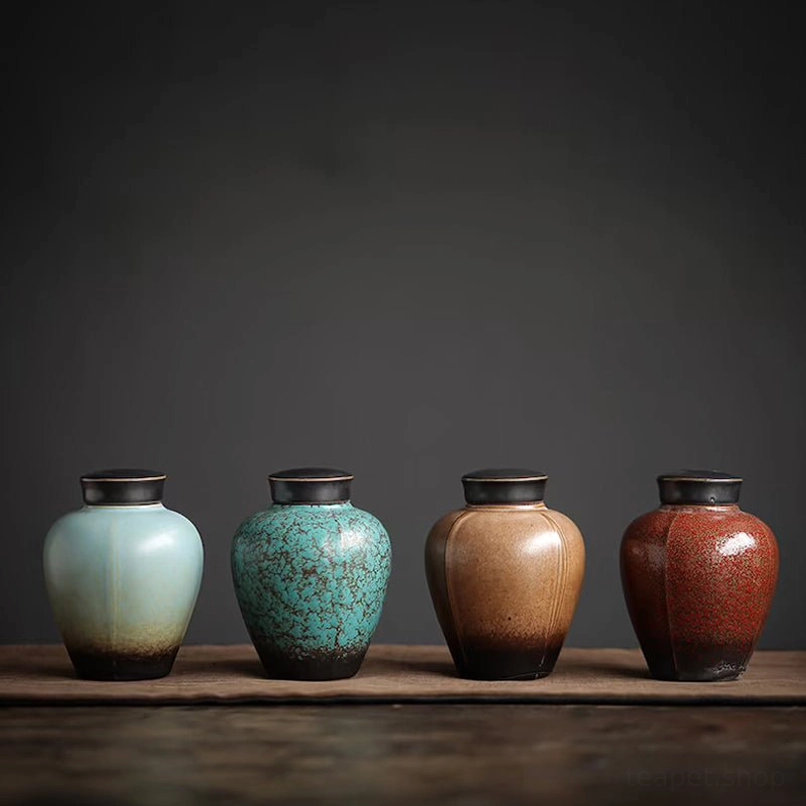 - Handcrafted Artisan Glaze: Each ceramic tea jar is finished with a unique reactive glaze, meaning no two pieces are exactly alike. From crackled textures to subtle gradient effects, every jar is a small one-of-a-kind work of art.