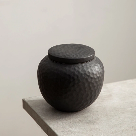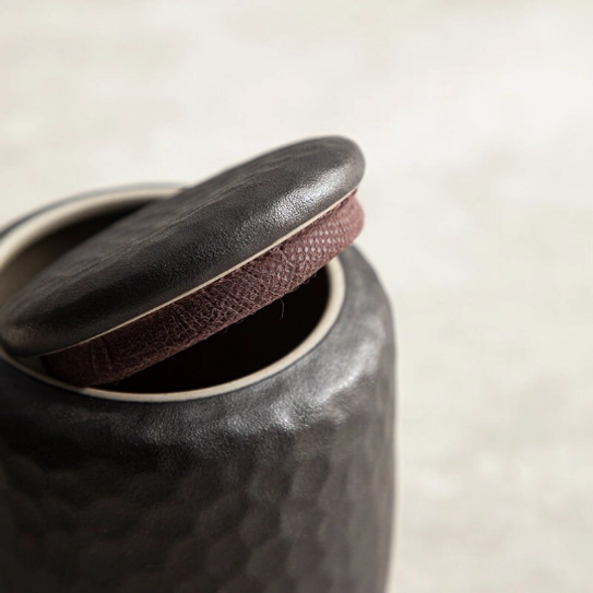 Tea storage has been a core part of Chinese and Japanese tea culture for thousands of years. Properly sealed tea jars keep tea away from moisture, air, and odd odors – preserving the complex aroma and flavor that makes loose leaf tea special. This black hammered tea jar draws inspiration from the wabi-sabi aesthetic of Japanese tea ceremony, celebrating understated beauty and natural texture, making it a timeless addition to any tea collection.
