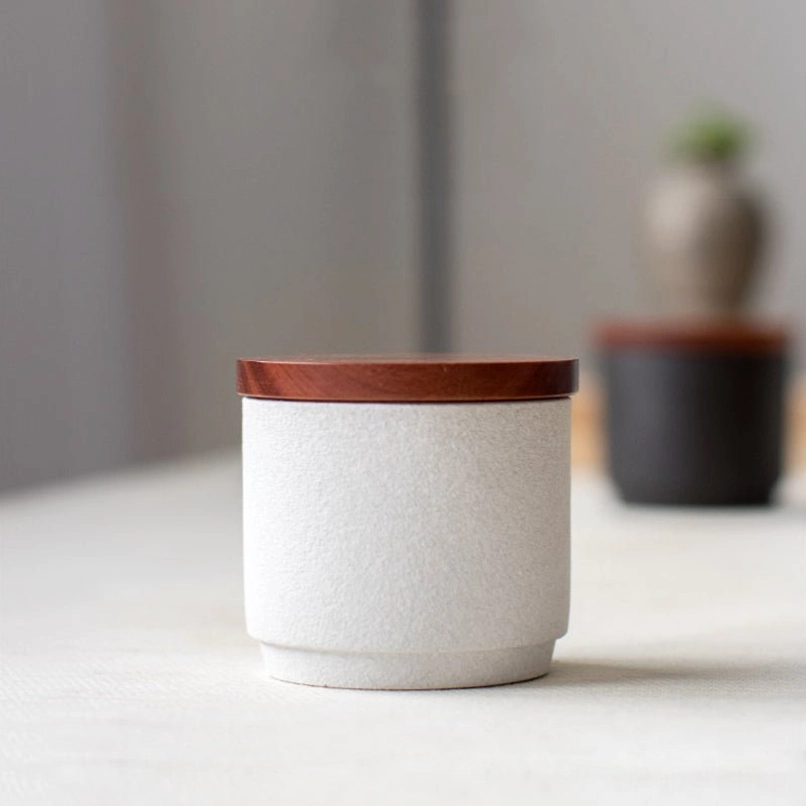 Package includes: 1 x handmade ceramic tea jar with wooden lid