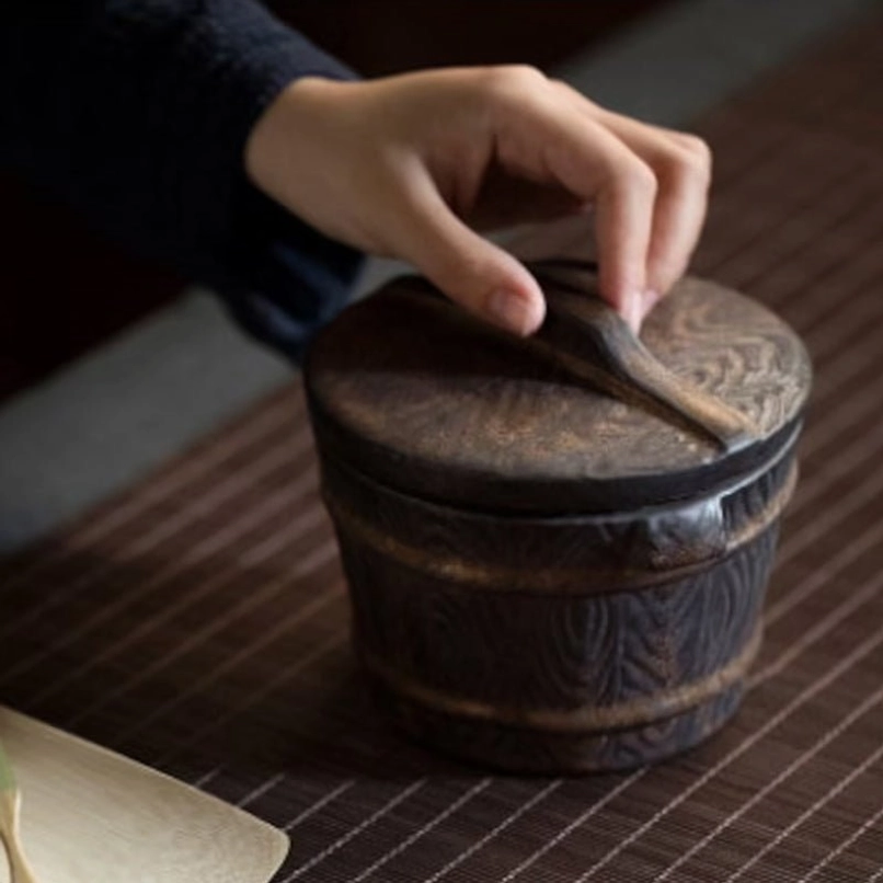 - Unique Vintage Barrel Design: Hand-textured to mimic the look of a traditional wooden storage barrel, this deep brown tea jar adds warm, authentic Chinese cultural flair to your tea table, countertop or display shelf. Unlike plain generic storage canisters, it doubles as a beautiful decorative piece for your space.