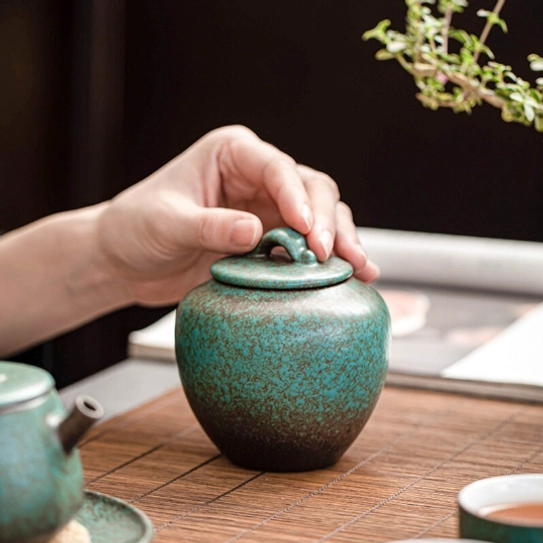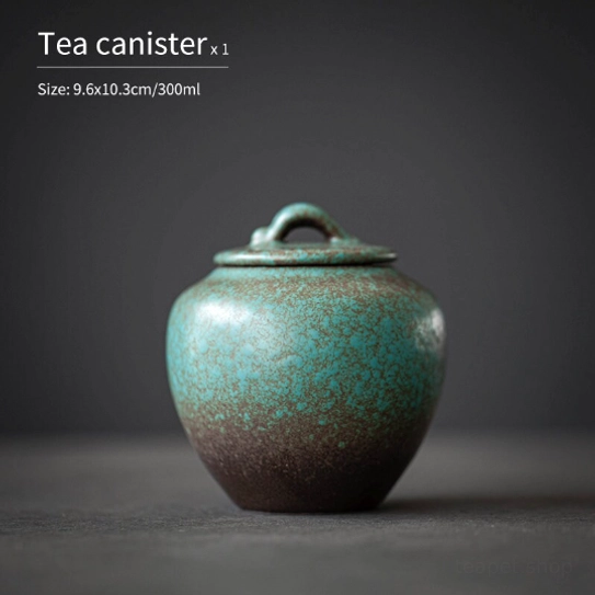 300ml Vintage Green Ceramic Airtight Tea Jar for Tea Storage
