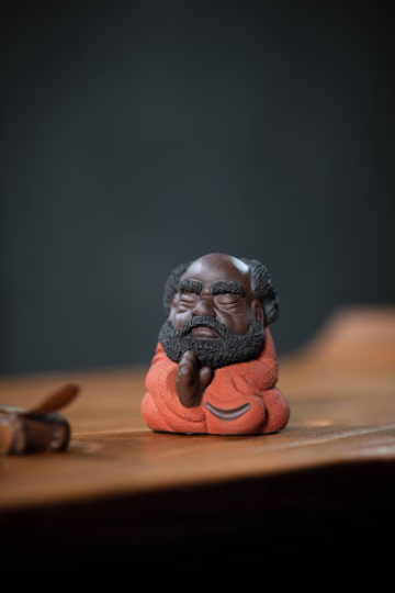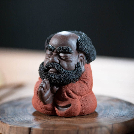Infuse your tea ritual with serene Zen energy with this handcrafted Bodhidharma tea pet. Made of porous clay perfect for tea nourishing, it brings deep cultural charm to your gongfu tea setup and doubles as a mindful decorative piece for tea lovers and Zen enthusiasts.