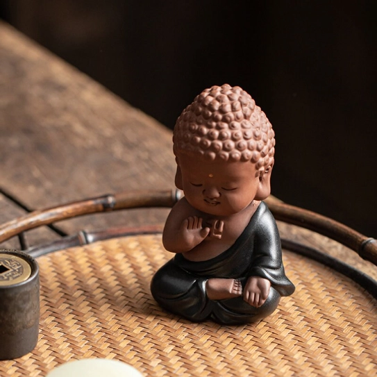 This adorable Q-version mini Buddha tea pet (chá chóng, 茶宠) is a creative modern interpretation of traditional Chinese tea culture, combining timeless Buddhist symbolism with a playful, approachable cute aesthetic. More than just a decorative ornament, it carries the profound meaning of peace, compassion and wisdom from Buddhist culture, bringing a tranquil, calming vibe to any space it lives in.