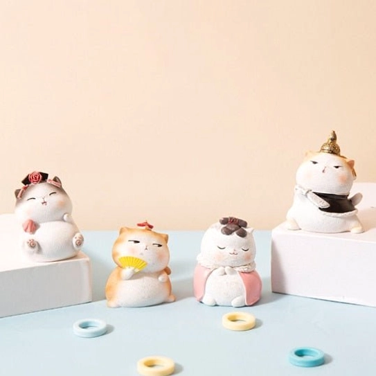 This set of 4 handcrafted resin cat figurines draws inspiration from ancient Chinese imperial court culture, reimagining cute chubby cats as whimsical imperial nobles dressed in classic Hanfu-style robes, traditional hair ornaments, and period accessories. Every tiny detail from delicate folding fans to miniature crowns merges modern cuteness with timeless Eastern aesthetic, making these figurines perfect as tea pet decorations, desk accents, or charming home decor pieces.