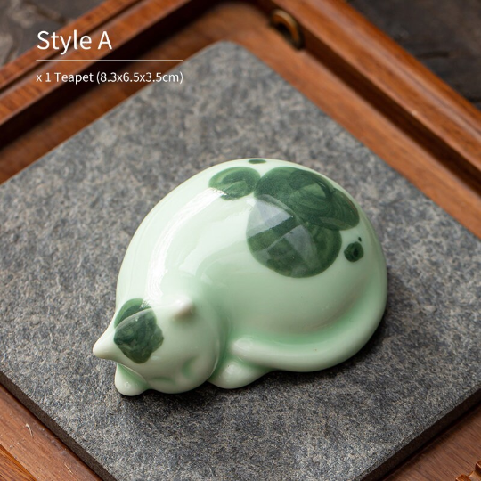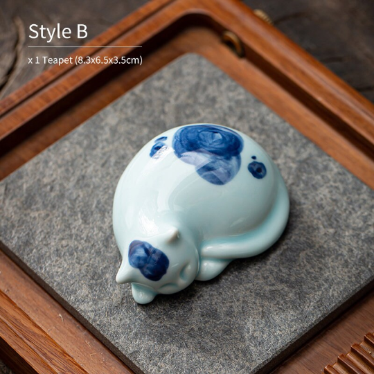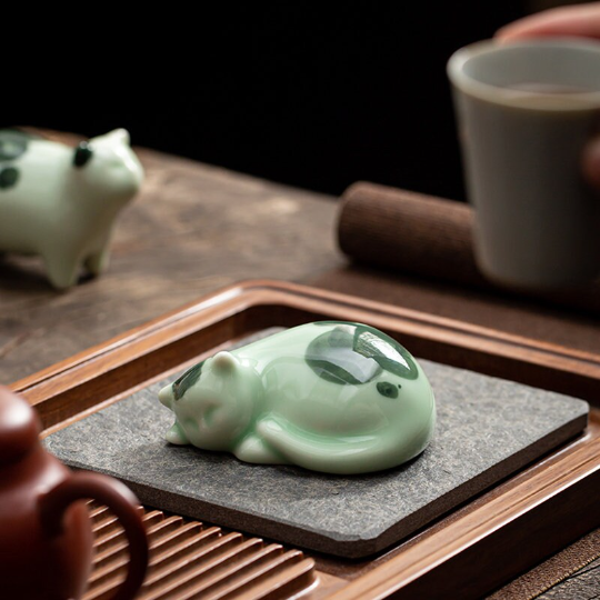 Handcrafted Ceramic Sleeping Cat Tea Pet – Cute Tea Table Decor